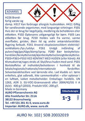 Indholdsdeklaration: træolie-standolie; linolie; appelsinolie; linolie-standolie; mineralske pigmenter; sikkativer (blyfri); ricinolie-standolie; kiselsyrer; lecithin.